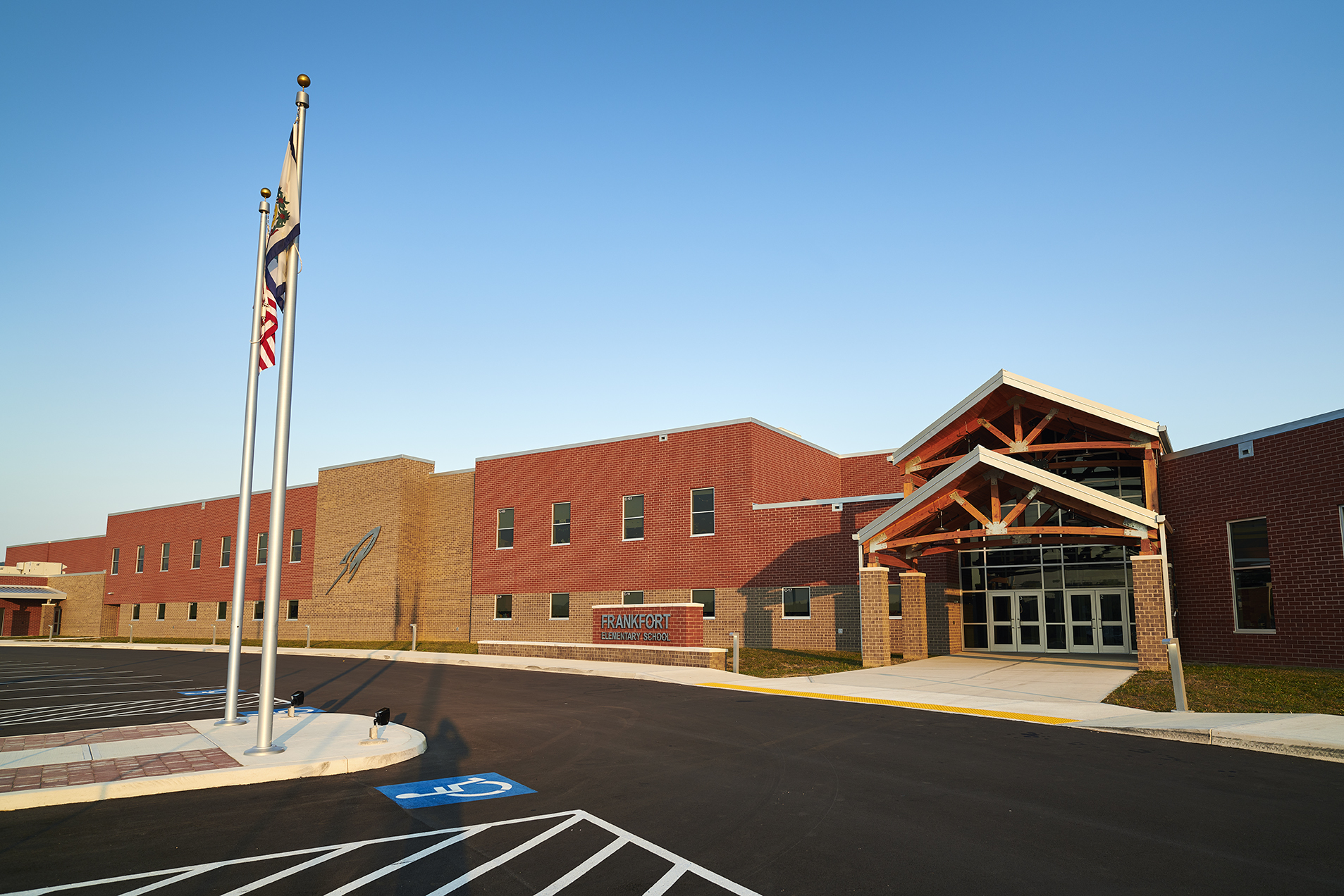 Frankfort Elementary School, part of the Mineral County School system in Ridgeley, West Virginia, is a newly constructed two-story building that consolidates three former schools into one cohesive elementary campus. Spanning 77,356 square feet, this state-of-the-art facility will accommodate over 700 students from Pre-K through 4th grade. The building features 40 spacious classrooms, interactive learning spaces, STEM labs, a multimedia center, and a regulation-sized gymnasium, providing students with a modern and dynamic environment for growth and learning.